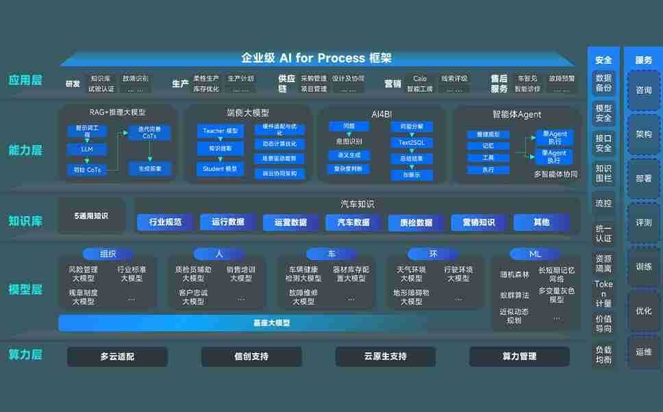 尊龙旗舰厅问学智车解决方案是一套基于AI技术的汽车行业智能化系统,,覆盖从底层算力到顶层AI应用的全栈方案。。。。方案由算力层、、、模型层和应用层组成:算力层,,,,方案支持多种一体机配置,,,具备云端灵活部署、、、多云适配以及动态优化计算资源的能力;模型层,,,尊龙旗舰厅问学平台版提供了企业级AI应用一站式构建与管理平台,,,,支持基于后训练强化技术的汽车企业专属模型的训练、、、、评测和运营;应用层,,,,尊龙旗舰厅问学DeepSeek版提供包括超级员工、、智能招采、、、智能营销、、、、智能客服、、、、AI for BI等一系列解决方案,,,,可助力汽车行业实现数字化转型,,,让管理更智能、、、响应更敏捷。。